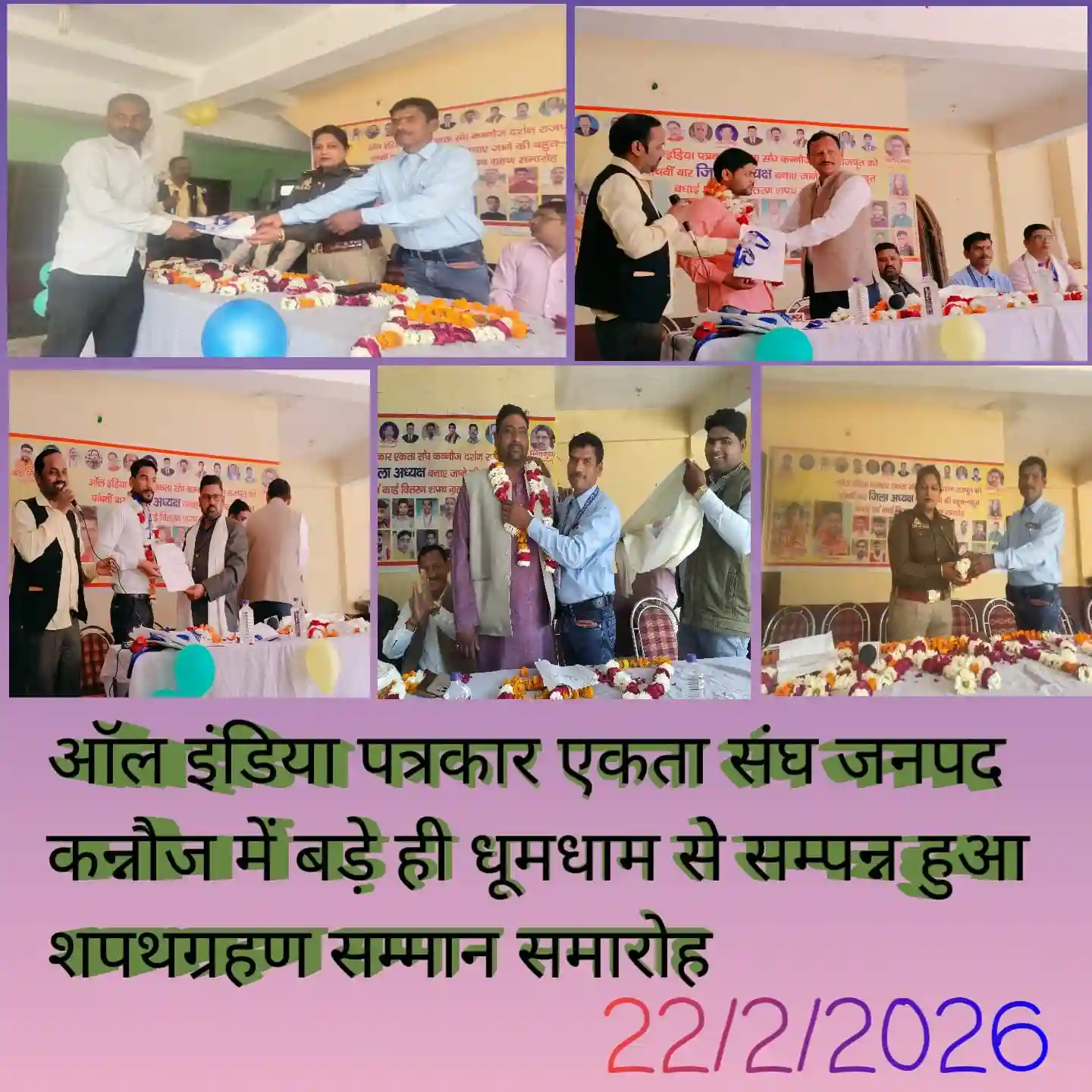 ऑल इंडिया पत्रकार एकता संघ दर्शन राजपूत को पुनः बनाया गया जिला अध्यक्ष कन्नौज जिसका आज धूमधाम से शपथ ग्रहण…