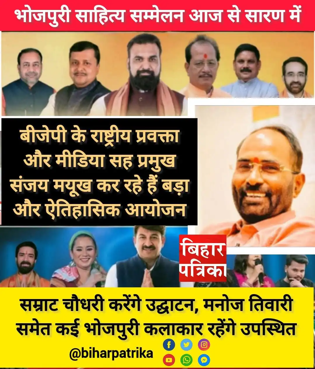सारण जिले के अमनौर में आज से अखिल भारतीय भोजपुरी सम्मेलन का शुभारंभ हो गया। दो दिवसीय इस आयोजन (29–30 नवंबर) की शुरुआत पारंपरिक विधि-विधान और सांस्कृतिक प्रस्तुति के साथ हुई। उद्घाटन समारोह में बड़ी संख्या में साहित्यकारों, कलाकारों, शिक्षाविदों, जनप्रतिनिधियों और स्थानीय लोगों की सहभागिता रही।