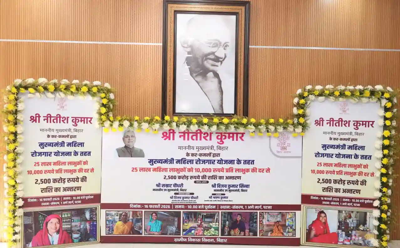 पटना, 15 फरवरी 2026 मुख्यमंत्री नीतीश कुमार ने आज 1, अणे मार्ग स्थित ‘संकल्प सभागार’ से ‘मुख्यमंत्री महिला रोजगार योजना’ की 25 लाख लाभुक महिलाओं के खाते में 10 हजार रुपये प्रति लाभुक की दर से 2,500 करोड़ रुपये की राशि का रिमोट का बटन दबाकर अंतरण किया। इसके पूर्व 1 करोड़ 56 लाख लाभुक महिलाओं के खाते में 15 हजार 600 करोड़ रुपये की राशि अंतरित की जा चुकी है। अब कुल मिलाकर 1 करोड़ 81 लाख महिलाओं के खाते में 18 हजार 100 करोड़ रुपये की राशि अंतरित कर दी गई है।