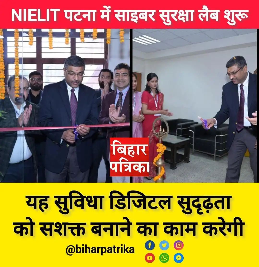 NIELIT पटना में स्थापित साइबर सुरक्षा प्रयोगशाला 02.12.2025 (मंगलवार) से संचालित हो गई है। इस प्रयोगशाला का औपचारिक उद्घाटन भारत सरकार के इलेक्ट्रॉनिक्स एवं सूचना प्रौद्योगिकी मंत्रालय के सचिव एस. कृष्णन द्वारा किया गया।