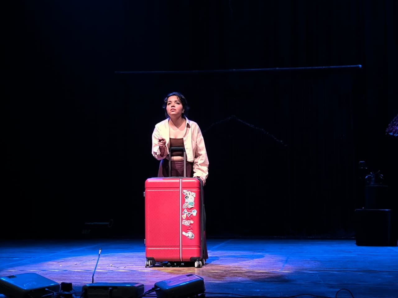 होम इन ए सूटकेस एक काव्यात्मक एकल प्रदर्शन है जो एक मार्मिक प्रश्न पूछता है – क्या हम कभी घर पाते हैं, या उसे अपने साथ लेकर चलते हैं? यह नाटक तारिणी की यात्रा का वर्णन करता है, जो लगभग 20 वर्ष की एक महिला है, जिसे अपने शहर को छोड़कर जाने के लिए बाध्य किया जाता है। कहानी की पृष्ठभूमि में एक अनाम शहर का एयरपोर्ट है। यह कहानी स्मृति, गति और रूपक के टुकड़ों के माध्यम से सामने आती है। आज के युवाओं को समर्पित – जो लगातार शहरों, अपेक्षाओं और पहचानों के बीच तालमेल बिठाने की कोशिश कर रहे हैं – यह कहानी उनके जीवन को दर्शाती है।