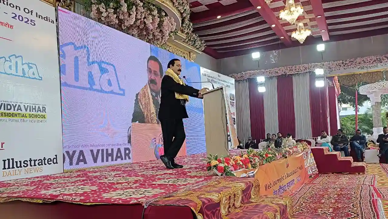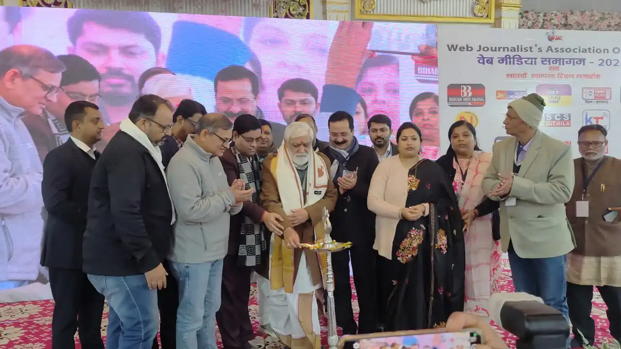 भागलपुर 27 दिसम्बर 2025। अंग प्रदेश की रेशमी नगरी भागलपुर के आनंद उत्सव पैलेस, आनंदगढ़ में देश के सबसे बड़े वेब पत्रकार संगठन वेब जर्नलिस्ट्स एसोसिएशन ऑफ इंडिया (WJAI) द्वारा आयोजित वेब मीडिया समागम सह 7वां स्थापना दिवस भव्यता के साथ आरंभ हुआ। कार्यक्रम का उद्घाटन पूर्व केंद्रीय मंत्री अश्विनी कुमार चौबे, माखनलाल चतुर्वेदी पत्रकारिता विश्वविद्यालय के पूर्व कुलपति एवं आचार्य प्रो. डॉ. संजय द्विवेदी, न्यूज़ 18 के ग्रुप एडिटर ब्रजेश कुमार सिंह तथा देशभर से पधारी मीडिया की दिग्गज हस्तियों ने संयुक्त रूप से दीप प्रज्वलन कर किया।