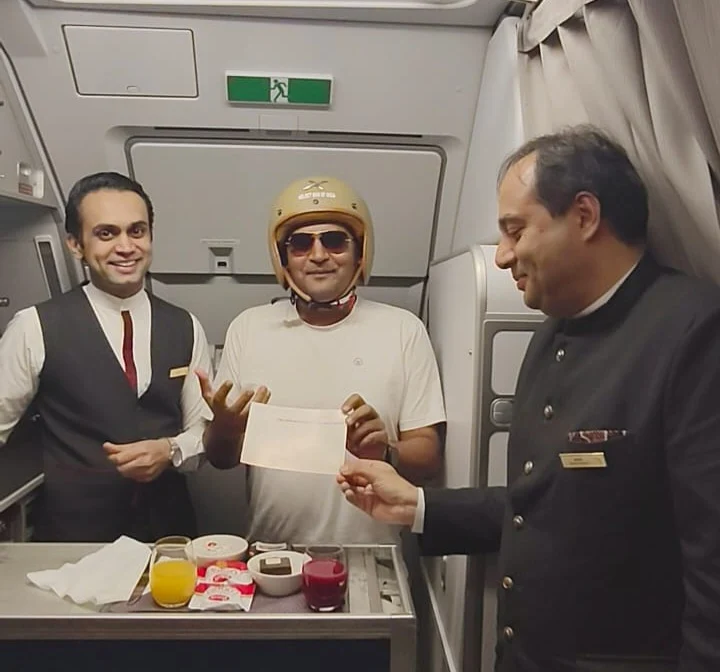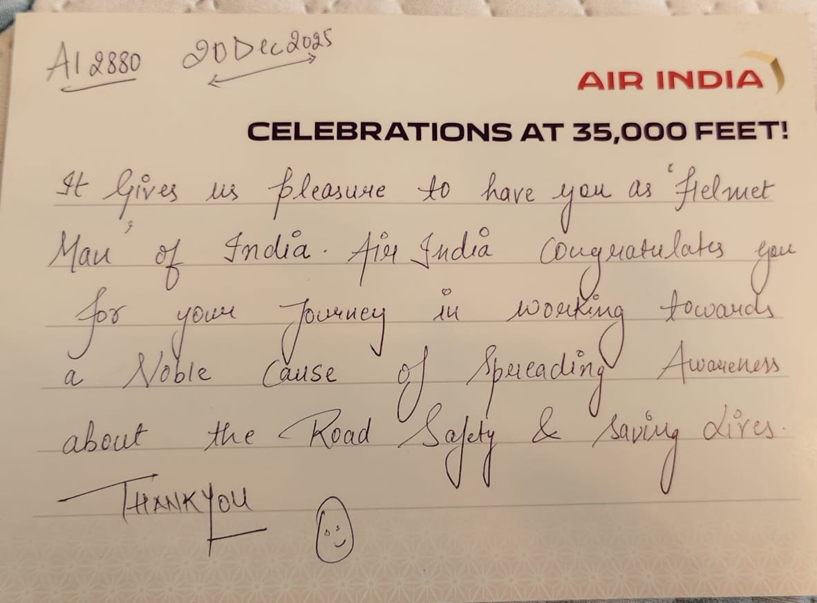 सड़कों का रक्षक आसमान में सम्मानित, 35,000 फीट की ऊँचाई पर एयर इंडिया ने ‘हेलमेट मैन ऑफ इंडिया’ को किया सलाम