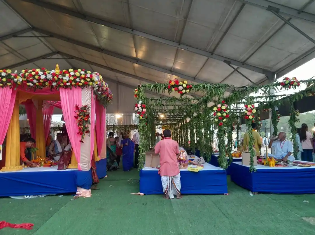 सचिव संजय तोतला ने बताया कि महाराणा प्रताप भवन में संगीत, हल्दी एवं मेहदी का रस्म पारंपरिक गीत के साथ किया गया। इस विवाह समारोह में मुस्लिम समाज भी अपना सहयोग दिया। श्रीकृष्णा मेमोरियल हॉल के बाहरी परिसर में विवाह के लिए 16 हजार स्क्वायर फीट में बने पंडाल में 51 मंडप में 51 पंडित द्वारा 51 जोड़ो का विधि पूर्वक विवाह कराया। सचिव तोतला ने बताया कि बारात महाराणा प्रताप भवन से संध्या 4:30 बजे निकली जिसमें 51 अलग-अलग घोड़े पर 51 दूल्हे राजा अलग-अलग बैठे हुए थे। इनको हरी झंडी दिखाकर संजय भालोटिया ने विदा किया। रास्ते मे अनेकों व्यावसायिक एवं सामाजिक संस्था ने उनका स्वागत किया। कार्यक्रम संयोजक कन्हैया अग्रवाल ने बताया कि श्रीकृष्णा मेमोरियल हॉल के बाहरी परिसर में बारात आगमन पर 6000 लोगो के लिए स्वरुचि भोज की व्यवस्था थी। मां वैष्णो देवी सेवा समिति के पूर्व अध्यक्ष सरदार जगजीवन सिंह ने बताया कि इस विवाह में झारखंड से 13 जोड़े आए हैं जिसमें आठ विकलांग हैं जोड़े हैं। साथ ही देशभर से चुने हुए चार शख्सियत कलाकार अक्षरा सिंह फिल्मअभिनेत्री, अनुराग संस्कृतियांयान समाजसेवी, संजय कुमार सिंह व्यवसाई, गायिका सुश्री रीतिका राज को मां वैष्णो देवी सेवा सम्मान 2025 से सम्मानित किया गया।