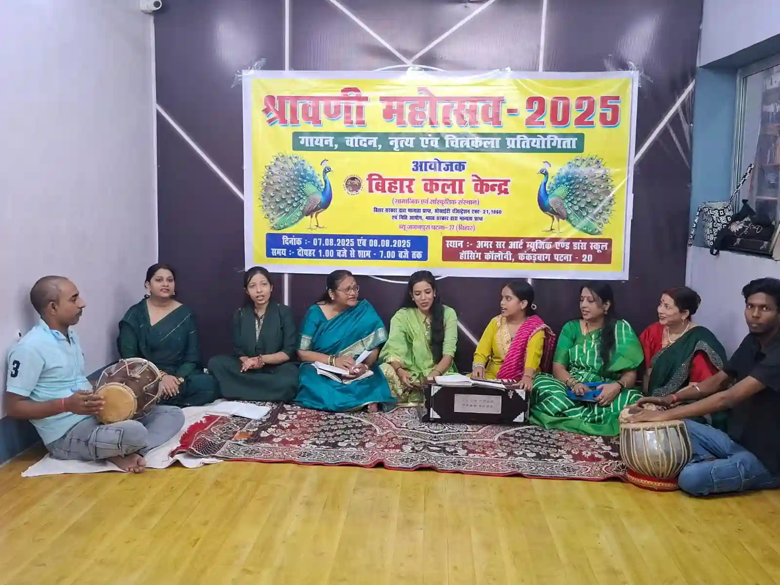 7 अगस्त 2025, पटना। बिहार कला केंद्र के तत्वावधान में कंकड़बाग स्थित अमर सर म्यूजिक एंड डांस स्कूल में दो दिवसीय “श्रावणी महोत्सव” का भव्य आयोजन किया गया, जिसका पहला दिन कजरी और शिव-भजन की मधुर प्रस्तुतियों के नाम रहा।