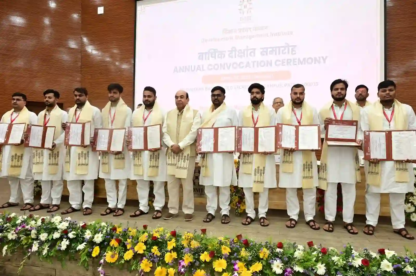 पटना : विकास प्रबंधन संस्थान (डीएमआई) का दीक्षांत समारोह शनिवार को पुरानी सचिवालय स्थित अधिवेशन भवन में हुआ। मुख्य अतिथि राज्यपाल लेफ्टिनेंट जनरल सैयद अता हसनैन (सेवानिवृत्त) पीजी डिप्लोमा (डीएम) सत्र 2024-2026 में उत्तीर्ण छात्र-छात्राओं को पोस्ट ग्रेजुएट डिप्लोमा इन मैनेजमेंट की उपाधि दी। निदेशक प्रो. देबीप्रसाद मिश्रा वार्षिक रिपोर्ट प्रस्तुत किए। समारोह की अध्यक्षता डीएमआई बोर्ड ऑफ गवर्नर्स के अध्यक्ष सेवानिवृत्त आइएएस भानू प्रताप शर्मा ने की। विशेष रूप से डिजाइन किया हुआ कुर्ता-पायजामा, अंगवस्त्रम और चप्पल में सभी विद्यार्थी दीक्षांत समारोह में भाग लिए। 50 विद्यार्थियों को उपाधि प्रदान की गई। संस्थान की वेबसाइट पर उपलब्ध लिंक के माध्यम से समारोह का लाइव प्रसारण भी किया गया। ग्रामीण विकास विभाग के प्रभारी सचिव हिमांशु शर्मा ने विद्यार्थियों को बिहार में ग्रामीण विकास की स्थिति से अवगत कराए। मौके पर डीएन एकेडमिक प्रो. शंकर पूर्वे तथा बोर्ड ऑफ गवर्नर्स के सदस्य मौजूद थे। विद्यार्थियों के साथ उनके माता-पिता व स्वजन भी कार्यक्रम में शामिल हुए।