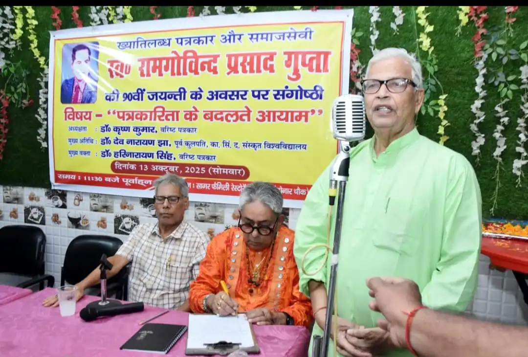 स्थानीय एक निजी क्षेत्र के होटल के सभागार में ख्यातिलब्ध पत्रकार स्व० राम गोविन्द प्रसाद गुप्ता की 90वीं जयंती के अवसर पर पत्रकारिता के बदलते आयाम विषय पर आयोजित संगोष्ठी को संबोधित करते हुए प्रो० देवनारायण झा ने कहा कि पत्रकारिता एक ऐसा क्षेत्र है जो निरंतर बदलते समय के साथ अनुकूलन कर रहा है। प्रौद्योगिकी की प्रगति और सोशल मीडिया के उदय ने पत्रकारिता के तरीके और उसके पहुंच को पूरी तरह से बदल दिया है। आज की पत्रकारिता में न केवल समाचार पत्र और टेलीविजन शामिल हैं, बल्कि ऑनलाइन मीडिया, ब्लॉगिंग और सोशल मीडिया भी महत्वपूर्ण भूमिका निभा रही है।