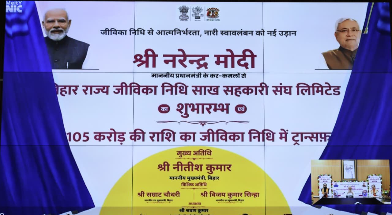 प्रधानमंत्री ने बिहार राज्य जीविका निधि साख सहकारी संघ लिमिटेड का किया शुभारंभ, 105 करोड़ रुपये की राशि का जीविका निधि में किया ट्रांसफर, वीडियो कॉन्फ्रेंसिंग के माध्यम से कार्यक्रम में शामिल हुए मुख्यमंत्री