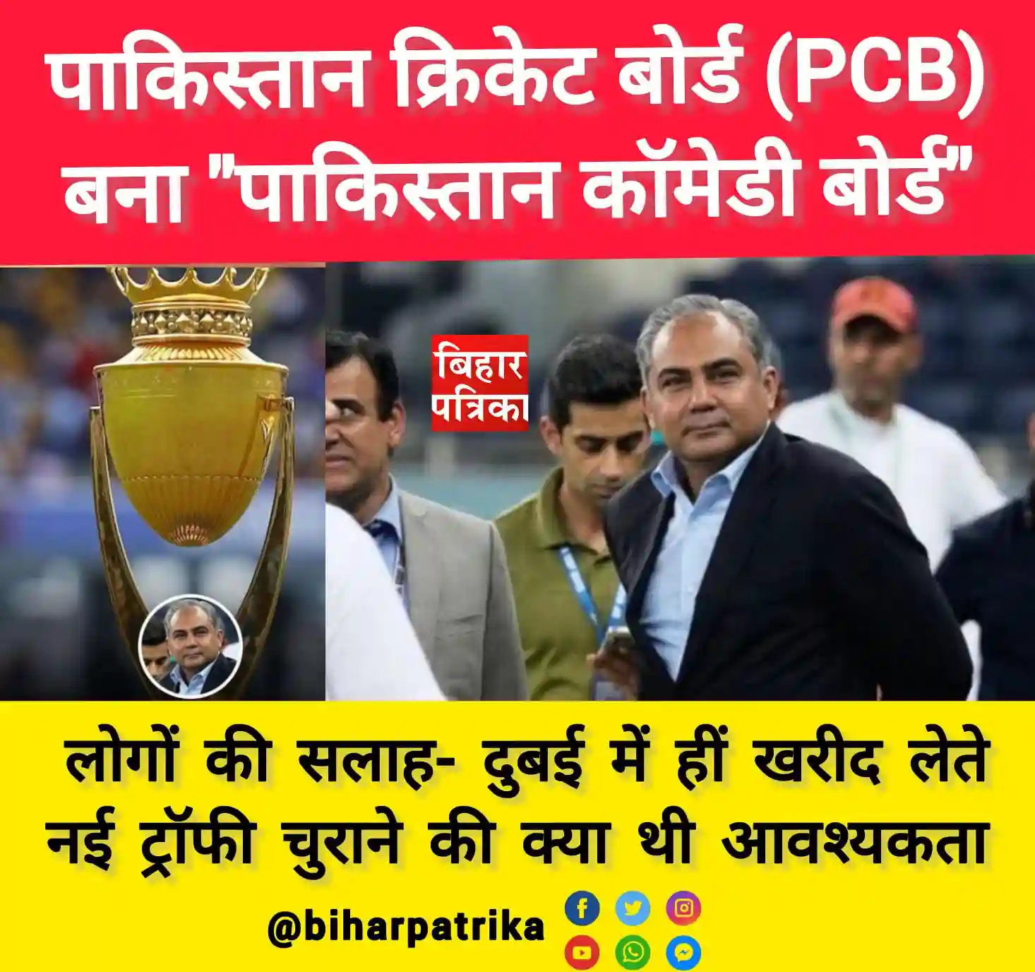 पाकिस्तान क्रिकेट बोर्ड (पीसीबी) को उसके चेयरमैन ने पाकिस्तान कॉमेडी बोर्ड बना दिया है। इस कॉमेडी बोर्ड के अध्यक्ष मोहसिन नकवी एक बार फिर सुर्खियों में हैं। लेकिन यह सुर्खियां उनकी नीतियों, फैसलों या सुधारों के कारण नहीं, बल्कि एक ट्रॉफी के कारण हैं। हाल ही में जब नकवी ने चैंपियनशिप ट्रॉफी को अपने साथ ले जाने का “विशेषाधिकार” दिखाया, तो क्रिकेट प्रेमियों से लेकर पूर्व खिलाड़ियों तक सभी ने इसे हास्यास्पद करार दिया। कुछ खिलाड़ियों और क्रिकेट प्रशंसकों ने इसे “ट्रॉफी चोरी” का नाम भी दे दिया।
